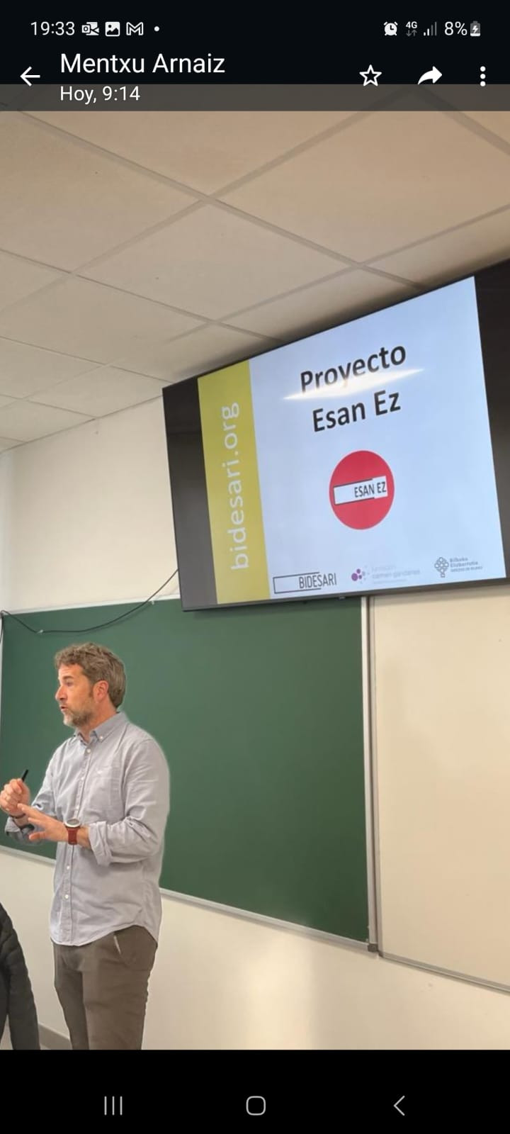 ESAN EZ proiektuaren DBH 4ko lehen saioarekin hasi gara gaur. Miguelek, BIDESARIkoa, ikasleen artean drogen kontsumoa prebenitzeko tailerren programa honetako lau saioak zer izango diren aurkeztu digu. Proiektua elementu bereziki esanguratsu eta baliotsua da, eta delitura eta kartzelara eraman dituen substantziekiko mendekotasuna izan duten pertsonen testigantzan eta esperientzian oinarritzen da.