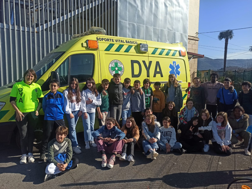 Alumnos y alumnas de LH6 han realizado el taller "TxikiDYA". En el que han aprendido las nociones básicas sobre los primeros auxilios y han podido conocer una ambulancia de Soporte Vital Básico desde dentro.