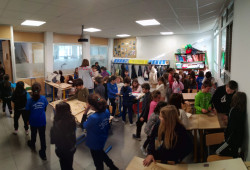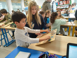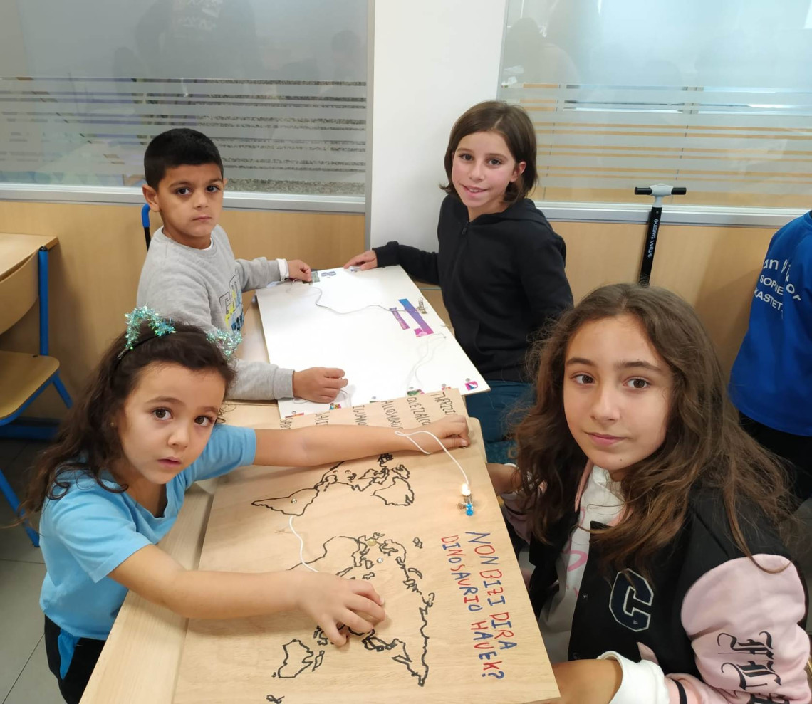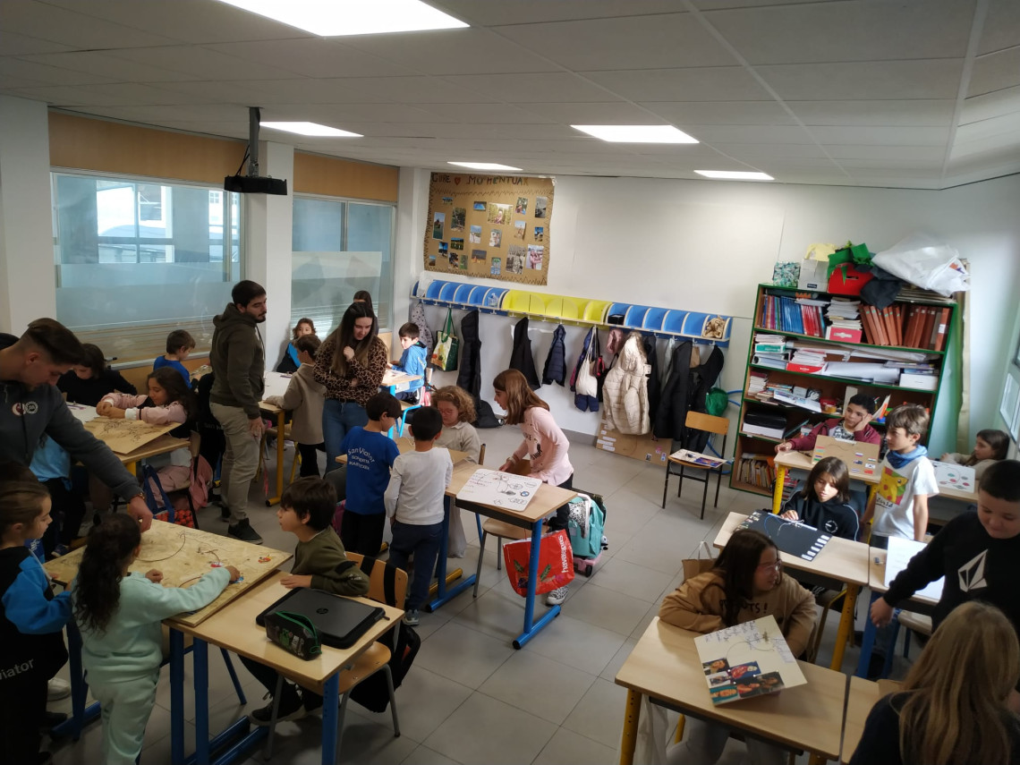 5. eta 6. mailako ikasleek haiek sortutako zirkuito elektrikoak erakutsi dizkiete Lehen Hezkuntzako beste maila batzuetako ikasleei.