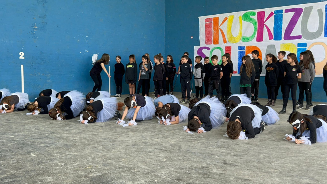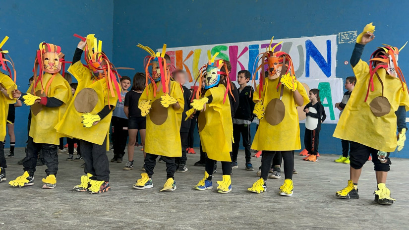 Lehen Hezkuntzako ikasle, familia eta irakasleok Camile Saint-Saensen "Animalien Inauteriak" eszenaratzeaz gozatu dugu.