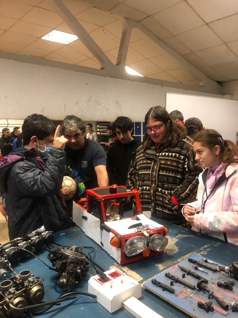 GS Automoción 1° realizando, dentro del Reto de las "Maquetas Coches Parte Eléctrica", la presentación de las mismas al alumnado de SAT.